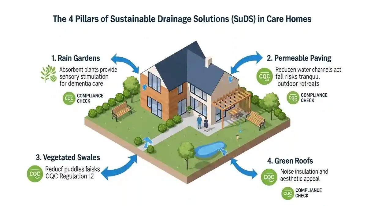 The future of sustainable drainage solutions CQC care home design is the integration of SuDS (Sustainable Drainage Systems). In St Johns, Policy EN18 of the Local Plan encourages SuDS to manage surface water runoff, which often plagues the surrounding area.